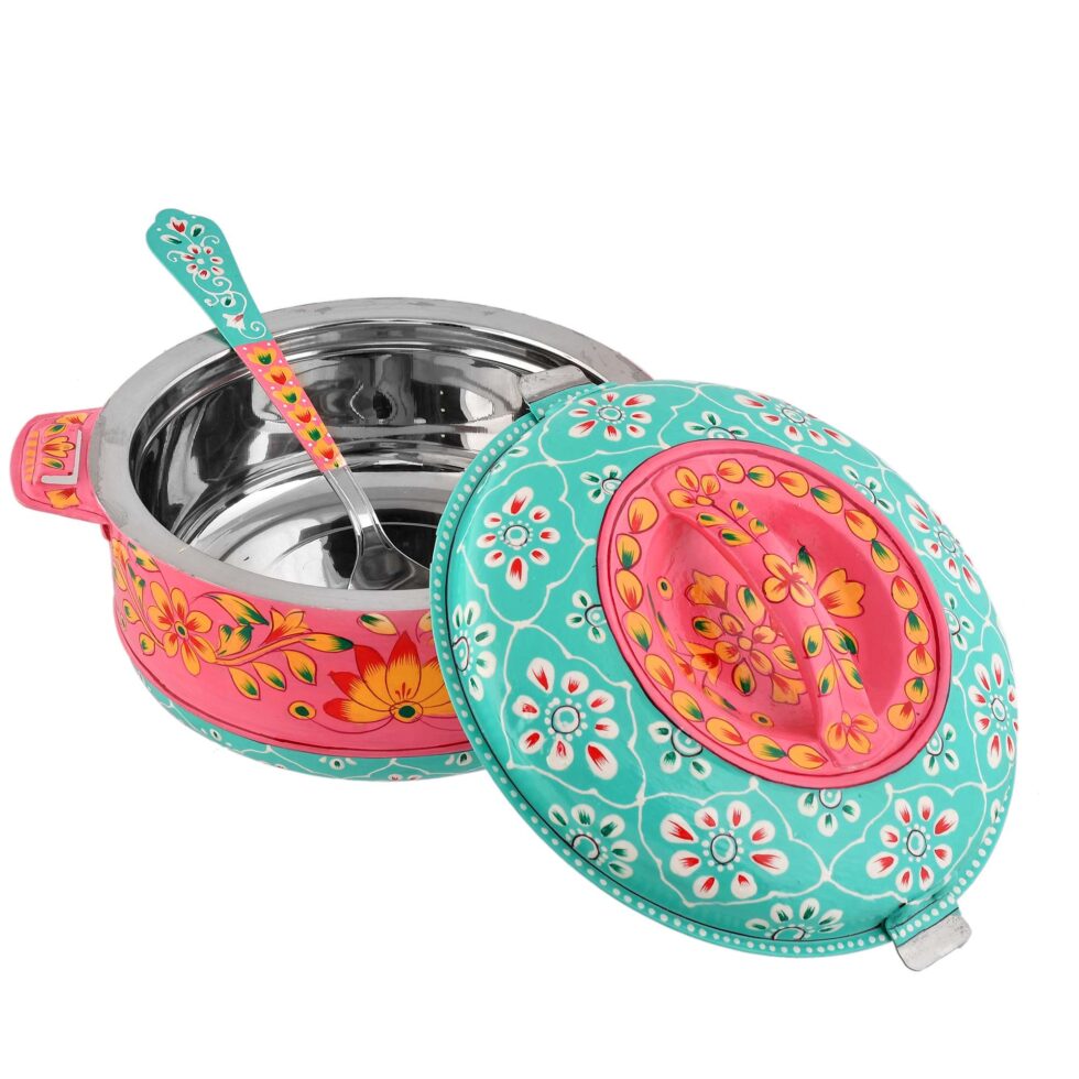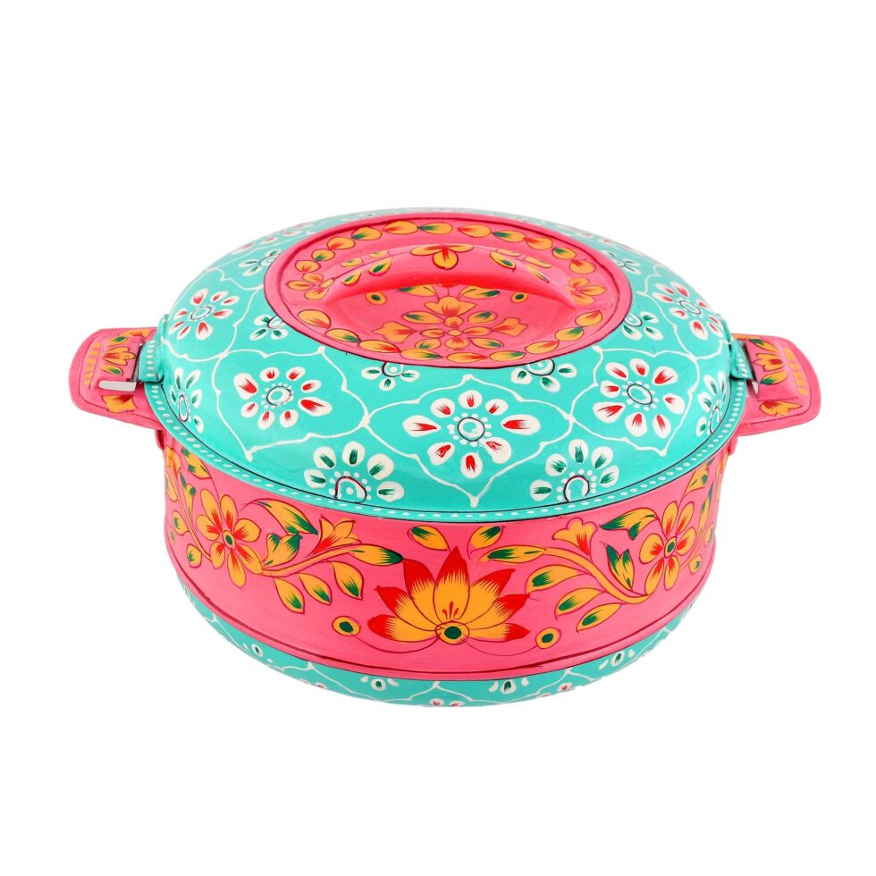 Keep every dish warm and inviting with this Aqua Blue & Pink Aluminium Hot Case (11 × 27 cm). Hand-crafted from premium aluminium, it combines efficient insulation with artistic design—ideal for homes, restaurants, or outdoor events.