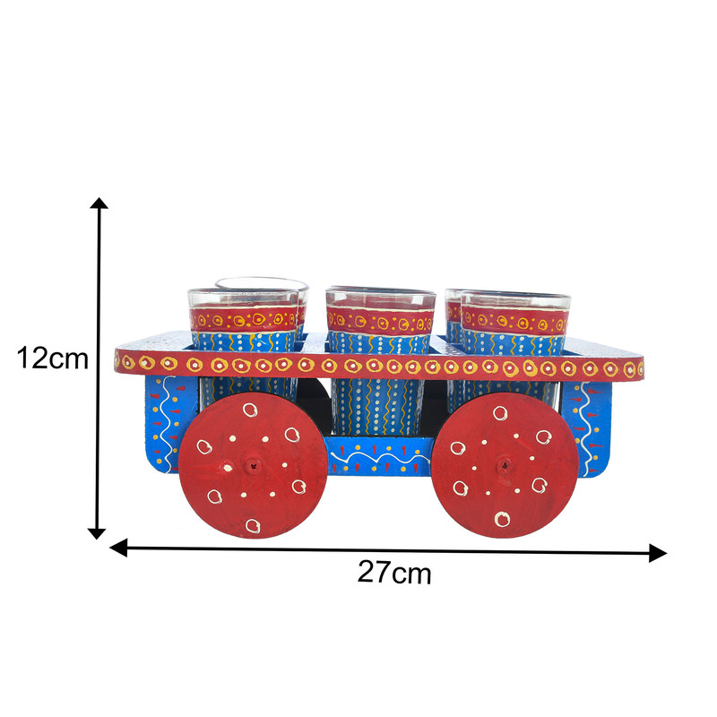 Bring color and charm to your tea moments with this Blue Hand-Painted Aluminium Tea Kettle Set (22 × 20 cm). Complete with six matching glass tea cups and a sturdy wooden cart, it blends Indian artistry with modern functionality – perfect for serving, gifting, or display. ☕💙
