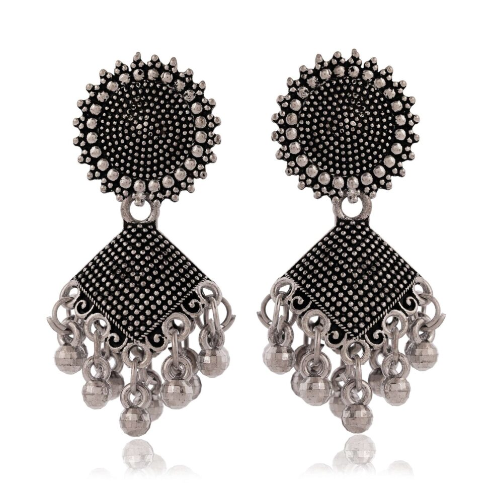 Women’s Dot Design Earrings, Indian Hoops, Mandala Hoops Chakra – Drop Dangles Earrings