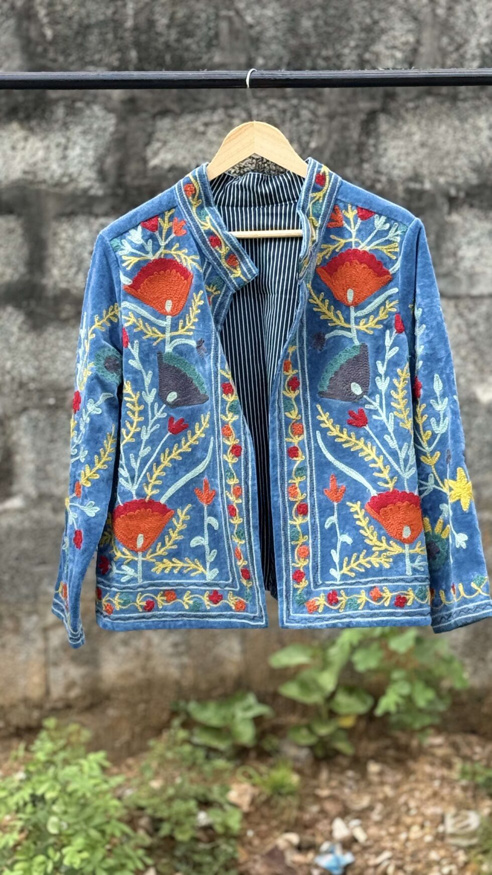 Luxurious velvet jacket featuring intricate Suzani embroidery. Perfect blend of elegance and tradition β€” ideal for festive and ethnic occasions.