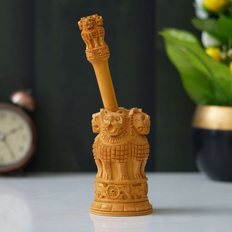 Handcrafted Wooden Ashoka Pillar Replica: Symbol of Indian Heritage